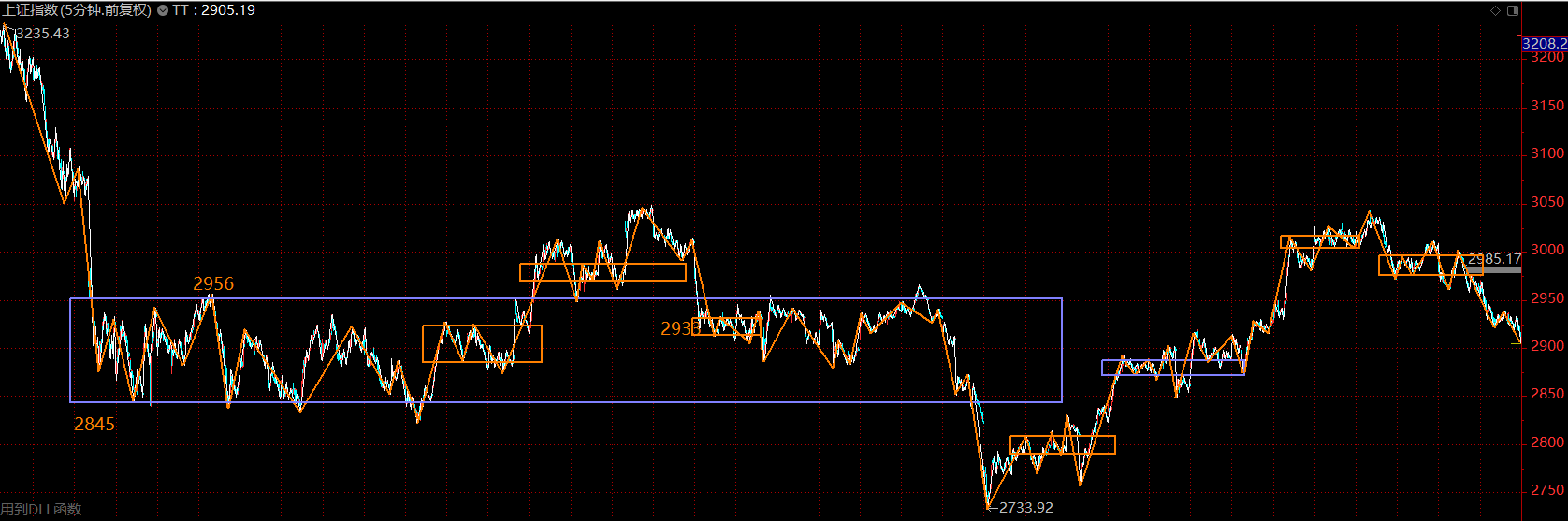 上证指数已跌回了大中枢内部,目前最强支撑在中枢下轨2850附近。同时,从短线看,目前处于构建五分钟下跌趋势第二个中枢的阶段,即所谓的短线越跌越买的阶段。投资者可稍微忽略指数,着手分批布局三季报超预期个股,静待反弹。