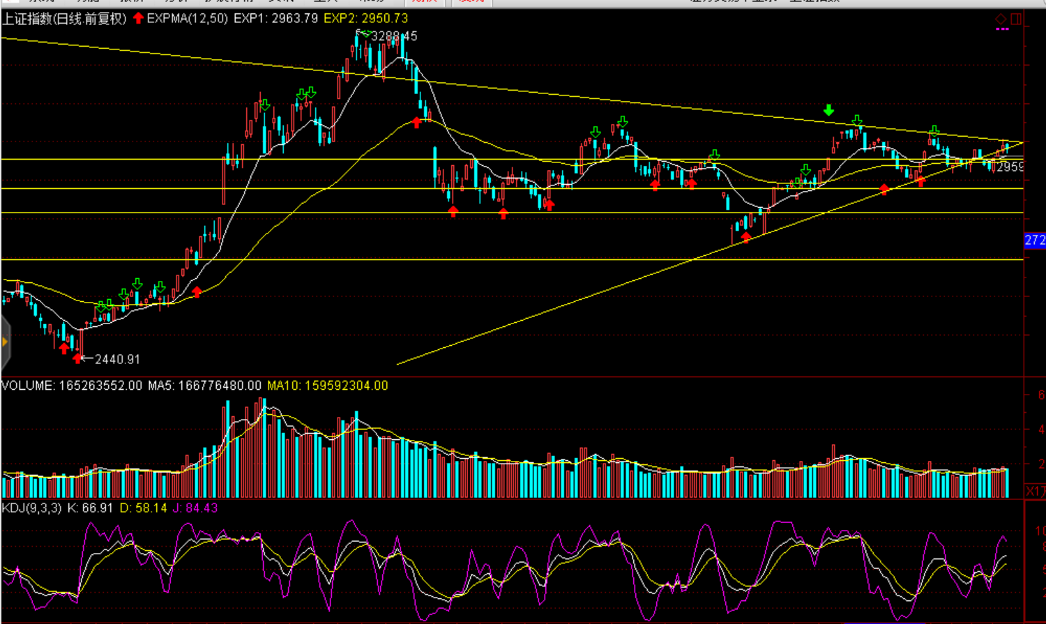 技术面:自9月16日以来沪综指形成的收敛三角形面临方向选择,今日是第34个交易变盘窗口,一旦向上,则形成趋势性反弹概率较大。