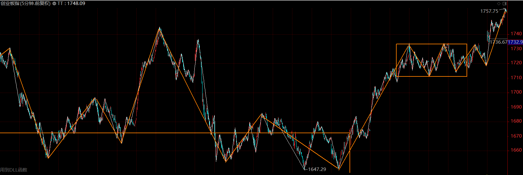 创业板本周创下八个月新高,完成了欧奈尔杯柄的一次突破,下一步要面临1792点的前高大压力位。日K线看,这个位置需要横盘整固一段时间,同时也利于构建下方中枢的第三类买点。小级别看,同样是运行良好的多头趋势,目前在背驰段里,本周初的回踩只要不跌破1735点,均可以安心持股待涨。