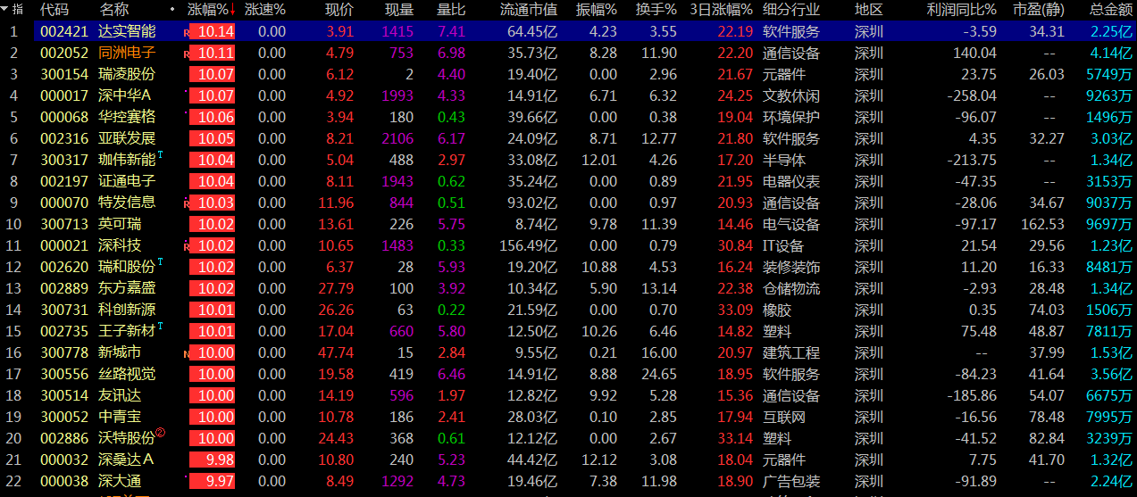 前日大面积普涨后,深圳本地股昨日总体表现强势,板块内31只股票涨停,在涨停股中占据一半数量。