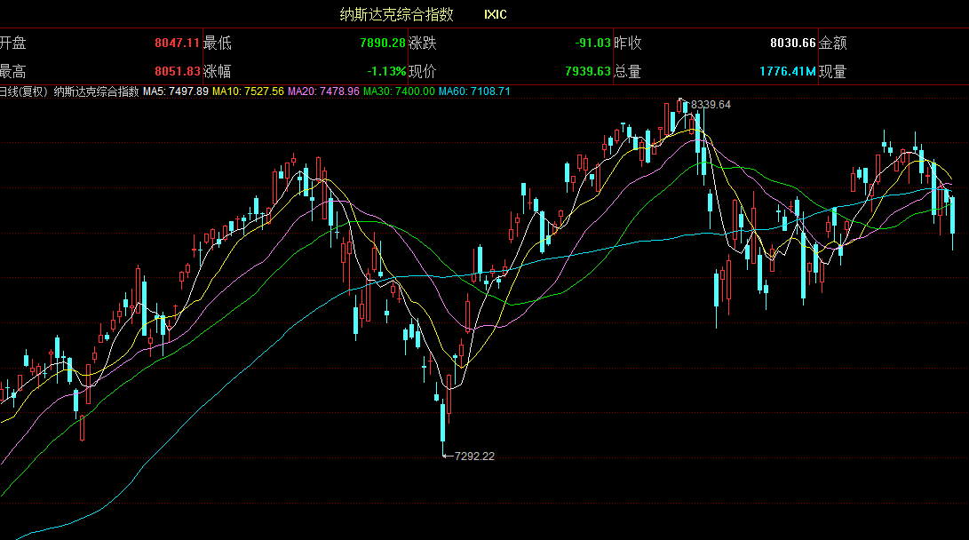 周五美股走弱,道指跌0.26%报26820.25点,纳指跌1.13%报7939.63点。大型科技股全线收低。
