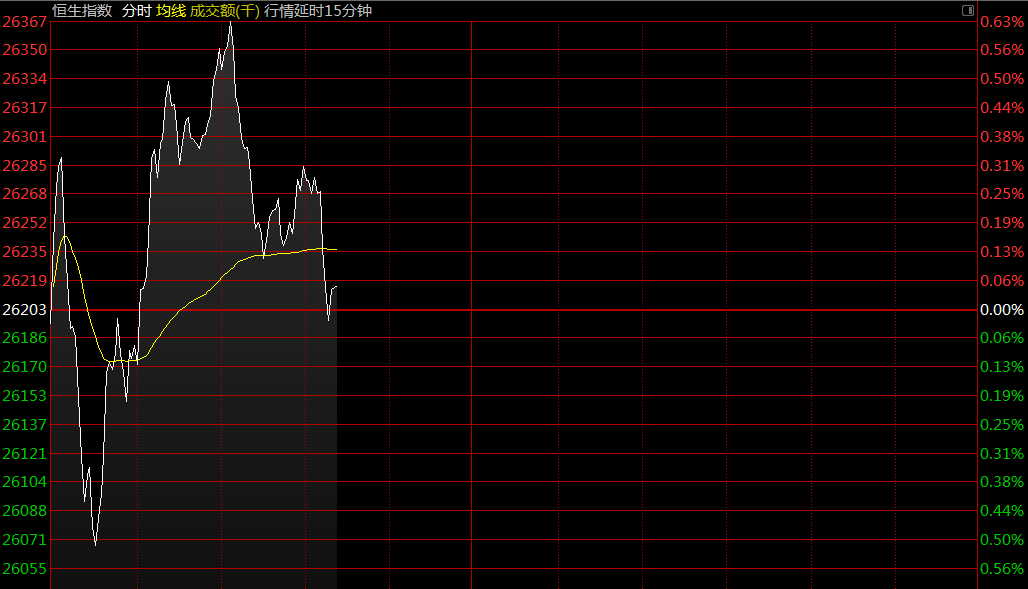 恒生指数开盘跌0.03%,报26194.17点。国企指数涨0.17%,报10411.02点。红筹指数涨0.37%,报4213.14点。大市盘前成交12.95亿港元。