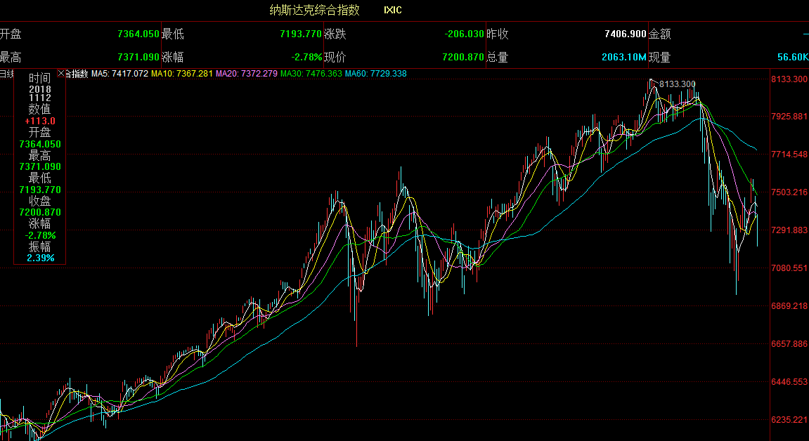 周五美股收市下挫。道指收报25,989点,跌201点或0.77%;标指收报2,781点,跌25点或0.92%;纳指收报7,406点,跌123点或1.65%。
