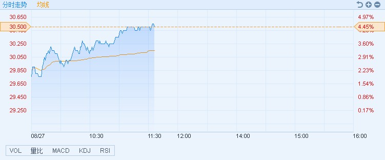 招商银行(03968)上周五(8月24日)公布中期业绩,股东应占净利同比增14%至447.56亿元人民币,截至11时35分,涨4.45%,报价30.5港元,成交额5.78亿。