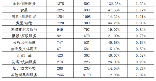 互联网及通信行业服务投诉33535宗,投诉量继续位居第一位,但增长幅度有所缩小,同比仅增长4.14%。