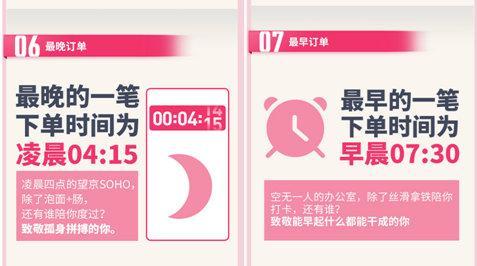 在办公室下单的时间也反映了白领们的加班情况。数据显示,北京、上海、广州、深圳等一线城市毫无悬念的榜上有名,最晚下单时间是凌晨04:15,最早是早晨07:30。为了出方案、赶项目和完成KPI,他们披星戴月,好在还有数不清的咖啡和红牛默默陪伴。