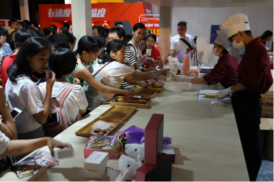 记者在快闪店的手工烘焙区看到了一块块手工凤梨酥精心制作的全过程。随着它的“出炉”,浓郁香味吸引来了不少市民围观。在试吃区里,市民品尝后都纷纷赞不绝口,“好吃,真的好吃,馅料也很足!”除此之外,店内还设置了爱的温度、娃娃机、颜值打折AI人脸识别游戏等互动活动,也吸引了众多市民的热情参与和围观。