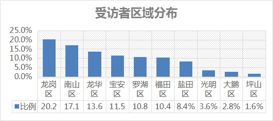 本次调研中受访者,原特区内的4个区的消费者占比为49.8%;女性消费者与男性消费者的比例约为1:1 。