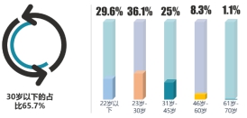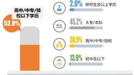 本次调研中,连锁餐饮消费者中,23岁-30岁是主要消费者,占比36.1%,30岁以下的消费者占比为65.7%。52.8%的受访者学历为高中/中专/技校及以下 。