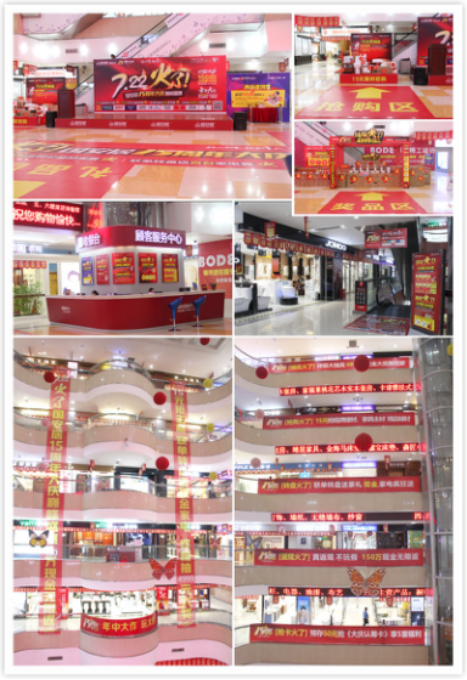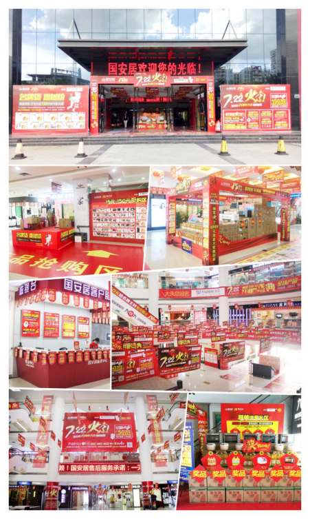如今,国安居15周年大庆的消息已传遍鹏鹅两城。11重优惠成为众多装修业主的福音,目前,各分店全部张灯结彩焕然一新,高挂巨幅折扣牌,各环节的奖品堆积如山,户外广告铺天盖地,有图有真相。
