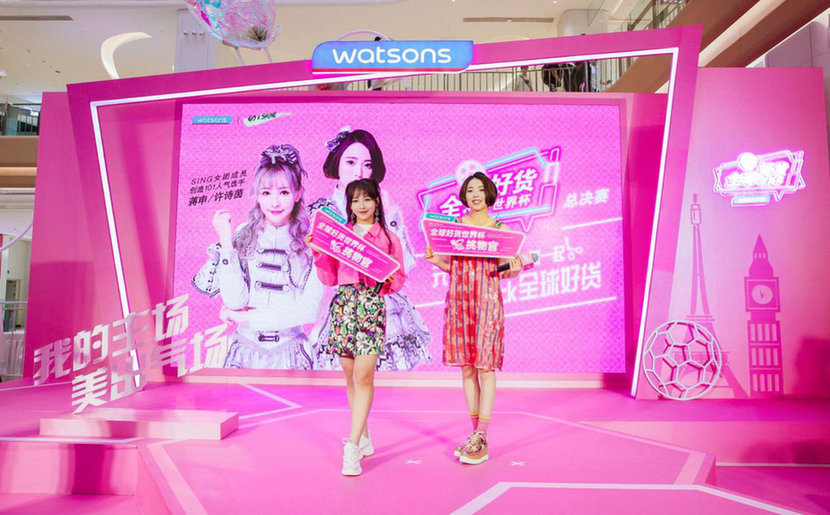 “全球好货世界杯”网罗世界各国美妆大牌爆款单品,让消费者能放心、便捷地在家门口就购买到全球品质好货。“全球好货世界杯”除了线上活动外,屈臣氏在线下还推出了粉红世界杯主题快闪店活动,艺人主题快闪店活动,更请来《创造101》人气选手、“亚洲首个电子国风”女团SING成员蒋申、许诗茵为“全球好货世界杯”打CALL。
