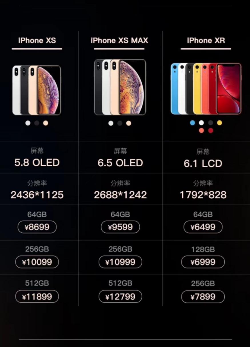 这次的三款新机都以“iPhone X”为命名基础,可以看做是X的半代升级版本,分别叫做iPhoneXR、iPhoneXS、iPhoneXS Max,三者主要区别在屏幕大小上:5.8英寸、6.1英寸和6.5英寸。