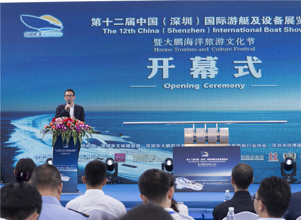 深圳新闻网讯 10月18日,第十二届中国(深圳)国际游艇展(SIBEX 2018)在大鹏七星湾游艇会盛大开幕。深圳市游艇帆船行业协会会长、优博会展集团董事长单大伟代表主办方致辞,大鹏新区管委会党工委委员、管委会副主任刘峰致辞。深圳市文体旅游局、深圳市经济贸易和信息化委员会、中国国际贸易促进委员会深圳市委员会、英国IBI杂志、法国拉罗谢尔游艇工业联盟、查验单位等受邀出席。