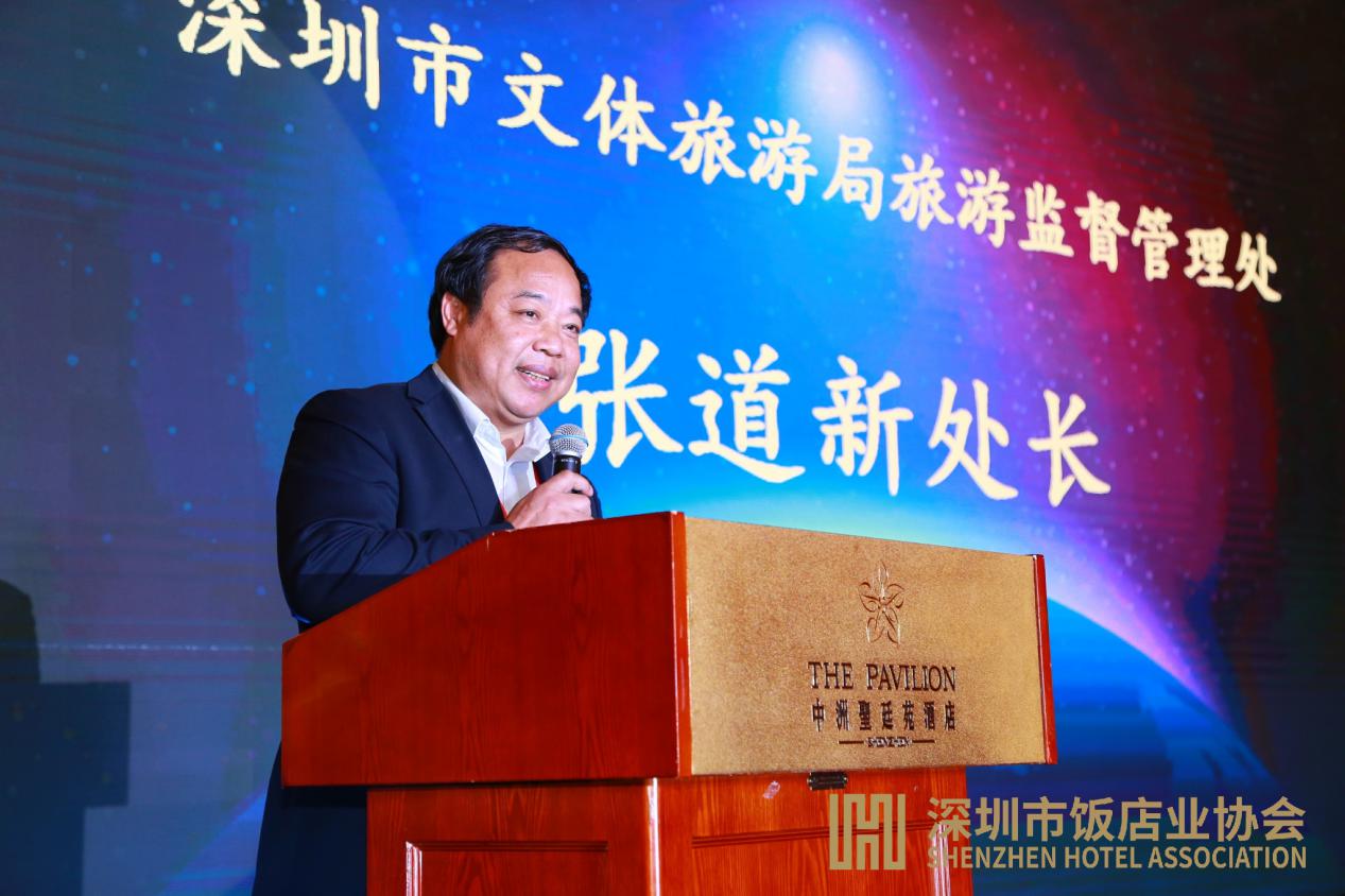 深圳市文体旅游局监管处张道新处长在论坛上发表讲话,他指出,“深圳市饭店行业已经进入了快速发展、稳步向前的快车道;据2018年初步统计数据显示,全市星级酒店的年均入住率均超70%,实现了社会影响和经济效益双丰收。当前经贸形势瞬息万变,有些业态在不断更新,加之大数据、云计算等现代科技已经走进酒店,行业从业员要有新认识,并不断提高专业技能和素质。”