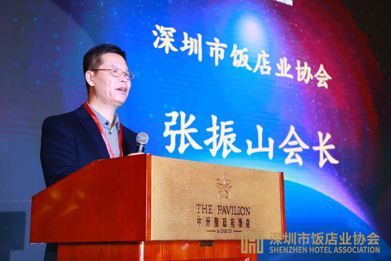 深圳市饭店业协会张振山会长致开幕辞,他表示,协会历经15年的发展,始终以“搭平台、组资源、推共享、促发展”为使命,以深圳市饭店行业、行业业务主管政府部门为核心,在全市整合并共享优质资源,协调政企关系,开展全方位、系统有效的服务,促进行业和地方经济的发展。