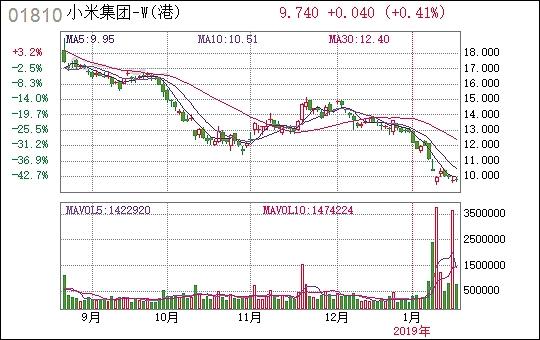 在连日收跌后,小米集团(1819·HK)本周四终于小幅反弹,微涨0.41%,收报9.74港元;其上市以来的最高记录是22.2港元,累计下跌57%,较17港元发行价下跌43%。最新总市值为2322亿港元,这与最高纪录的5291.81亿港元相比减少了近3000亿港元;雷军持有小米的市值,也由上市首日的1105.15亿港元,缩水至676.4亿港元。