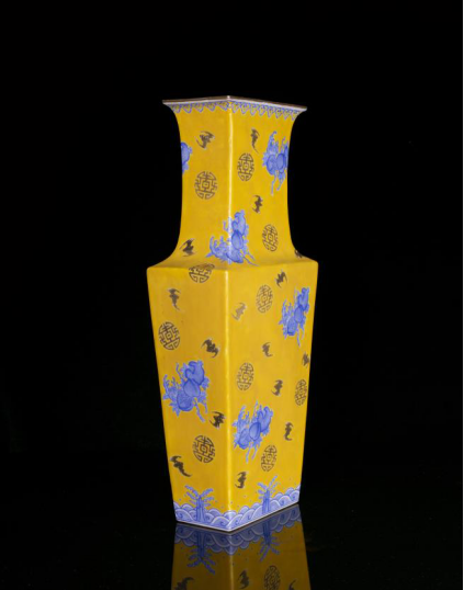 清·光绪黄釉蓝料彩福寿纹方瓶成交价208000元