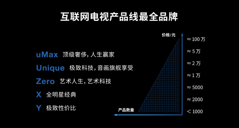 从顶级的uMax巨幕系列,到Unique系列追求黑科技,追求音画旗舰级的享受,Zero系列的科技艺术质感,经典的X系列,以及即将推出的极致性价比的Y年轻系列,乐融 Letv超级电视的产品线涵盖从40吋到120吋,价位段从千元起到几十万元,已经成为互联网电视产品布局最全面的品牌。