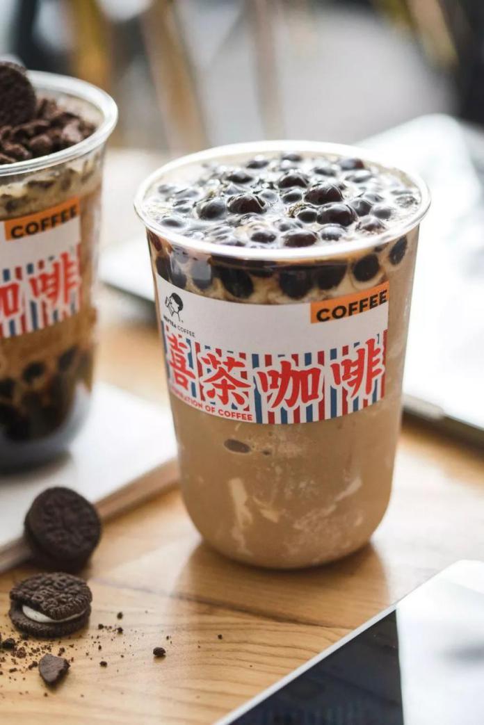 咖啡波波双拼:选用喜茶人气原料波波、奶冻、奥利奥,融入咖啡沙冰中,带来丰富口感。