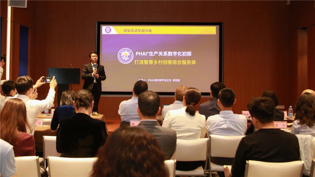 科技部国家乐活星创天地执行主任、PHAI +新农耕平台主任、河南稷道数字化栽培研究院发起人吴迪作《PHAI +生产关系数字化初探,打造智慧乡村创客综合服务体》主题分享,分享了农业生产关系数字化运营与生产关系数字化标准体系的相关工作,并希望通过AI技术在农业的应用,推动现在农业发展。