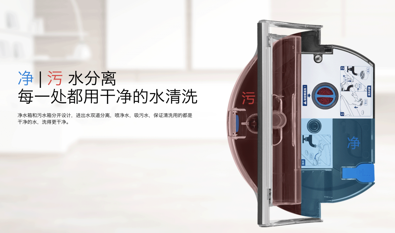 ILIFE智意W400所采用的大容量净污水箱分离设计,随时确保只用净水洗地,极大地提升了清洁效果。