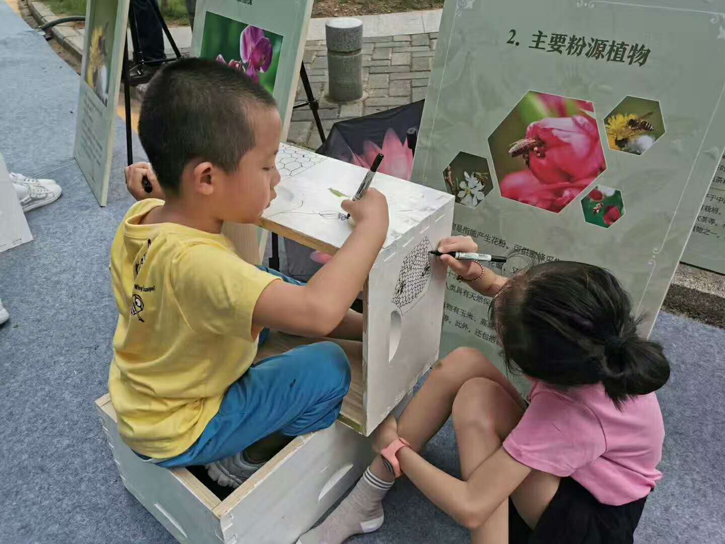 两位参加手绘活动的小朋友说,蜜蜂是非常可爱的小昆虫,它生活在我们身边,就像我们的朋友,我们来画蜜蜂就是想多了解蜜蜂,也能够更好地保护它。(张俊达)