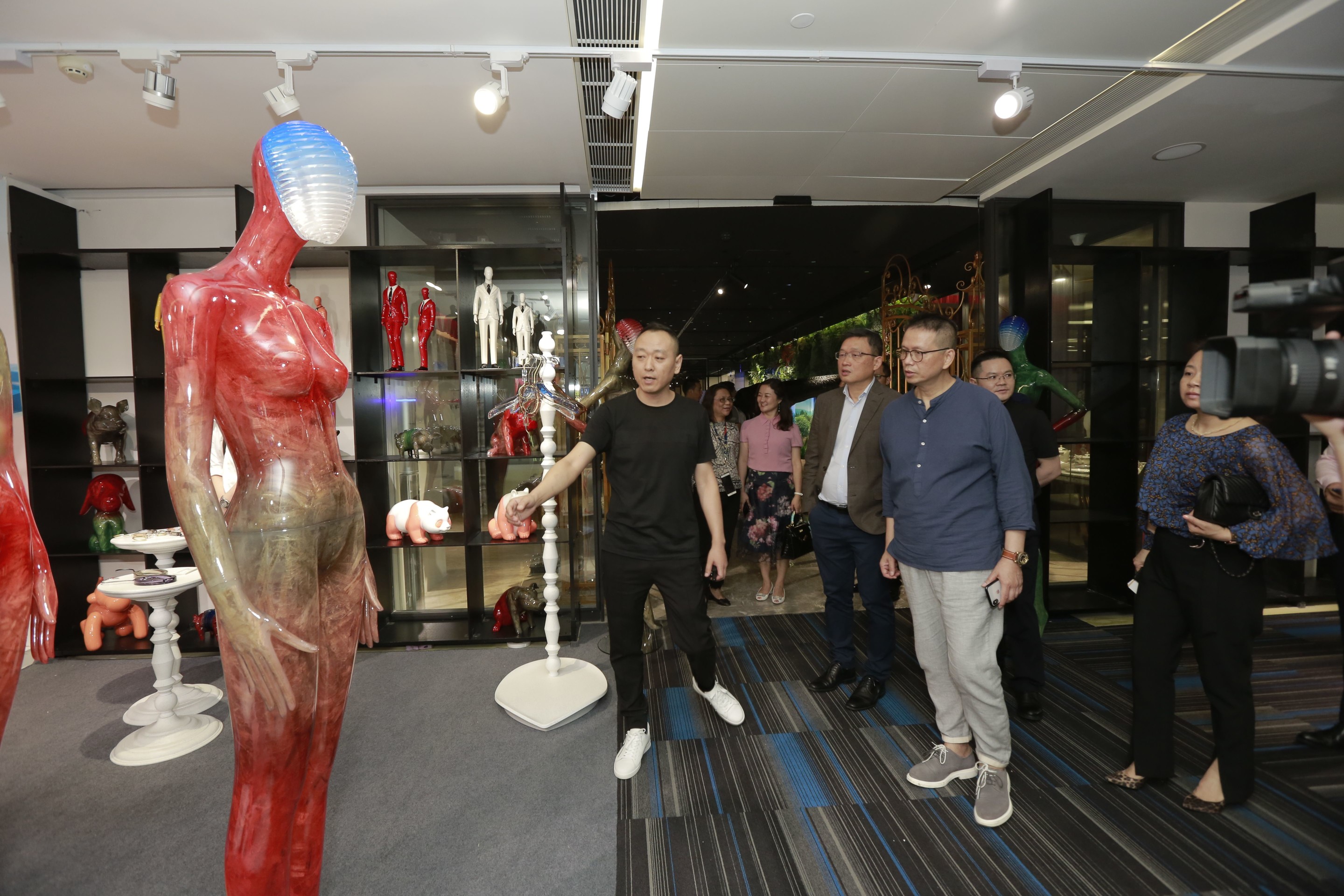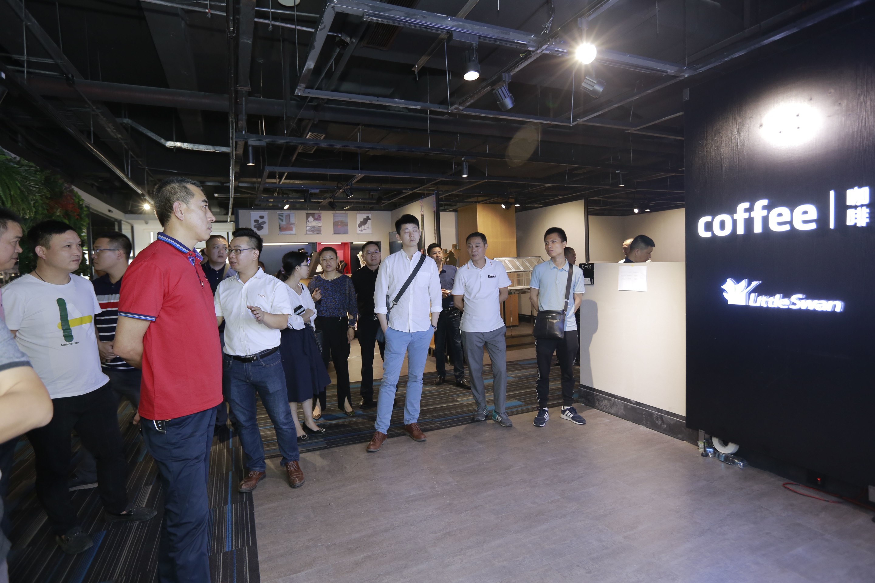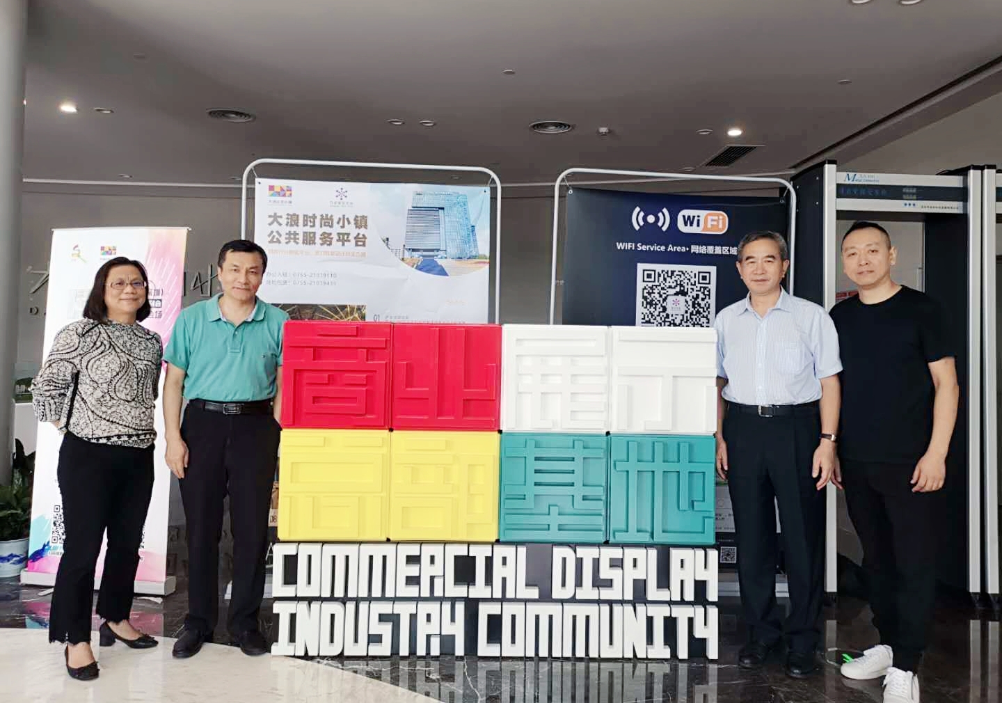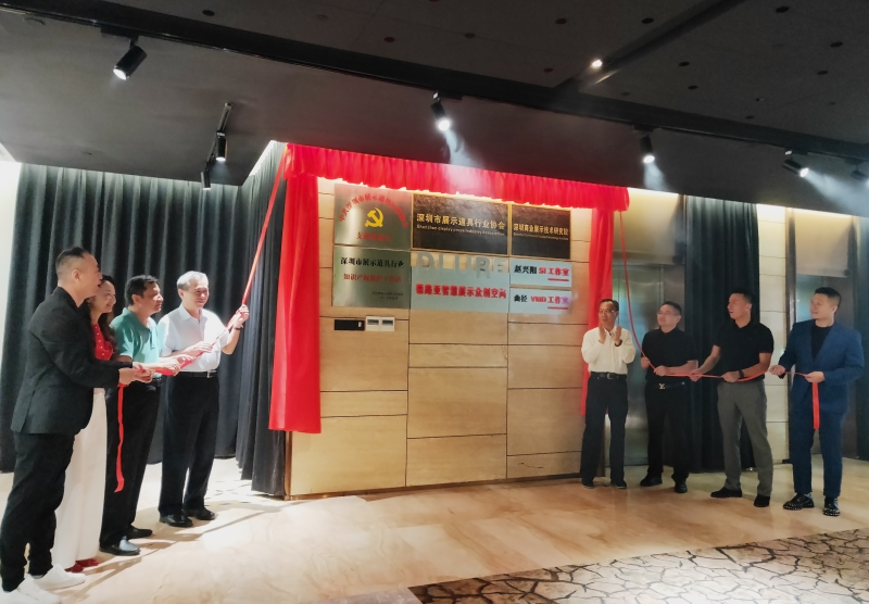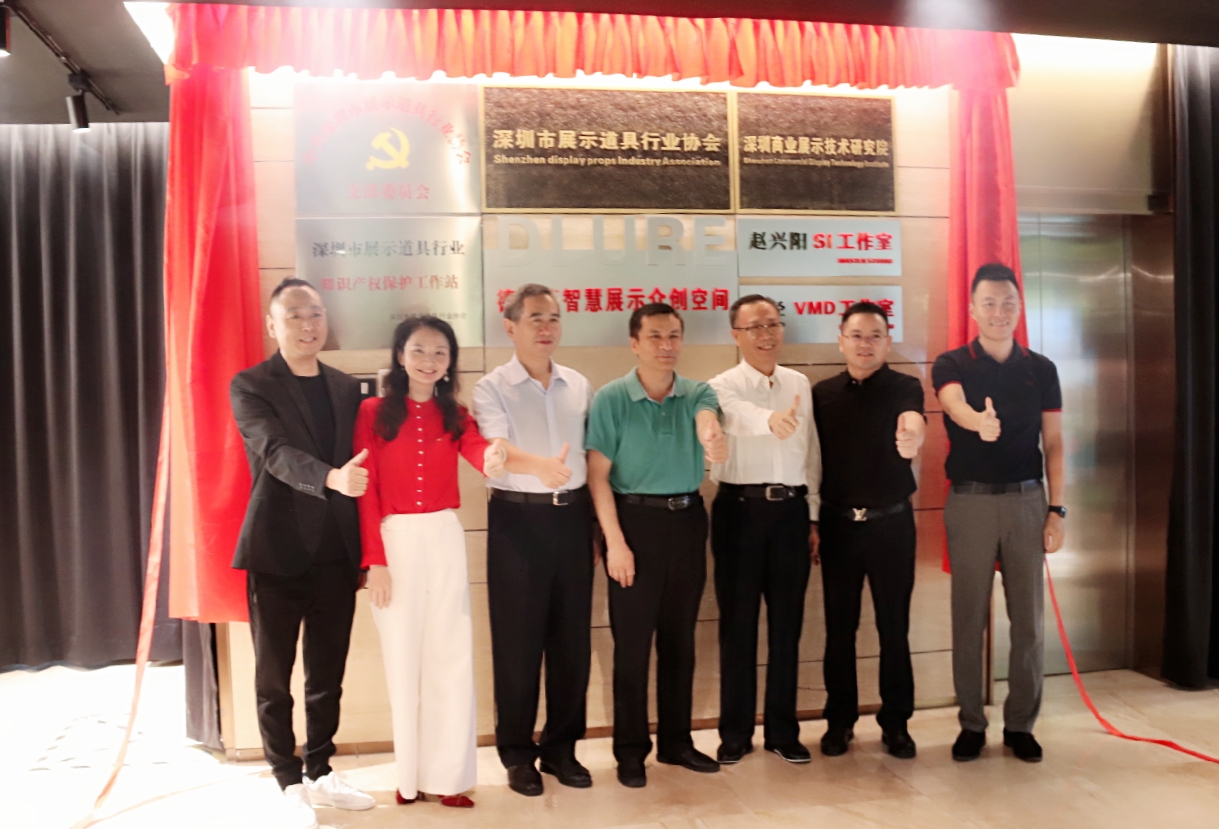 大浪时尚小镇党委第一书记刘继琴、深圳市社会组织管理局副局长孙景明、大浪时尚小镇建设管理中心主任曹宇昕、大浪时尚小镇党委专职副书记曾凤,市政协委员、原市民政局处长骆冰,卡尔丹顿服饰股份有限公司品牌总监胡屹,市展示道具行业协会创会会长骆诗学,商业展示技术研究院、展示道具行业协会秘书长苏建东,共同为商业展示总部基地揭牌。