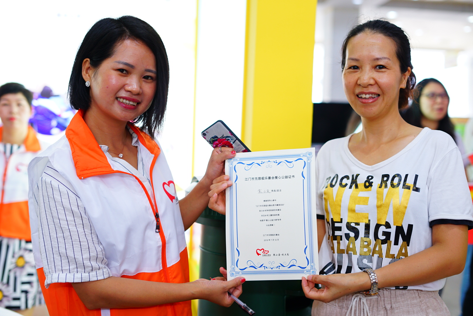 在活动现场,除了激发儿童阅读乐趣的体验外,无限极乐善会志愿者身体力行,踊跃地参与“捐书点”的闲置图书募捐活动,呼吁更多市民关注乡村阅读,让乡村儿童有书读、读好书,共同推动江门阅读文化建设和发展,本次募捐的图书将捐赠给五所童梦阅读空间。三天活动(7月12 ~14日),共有52人次捐赠了超过100本的闲置图书,并领取了公益证书。
