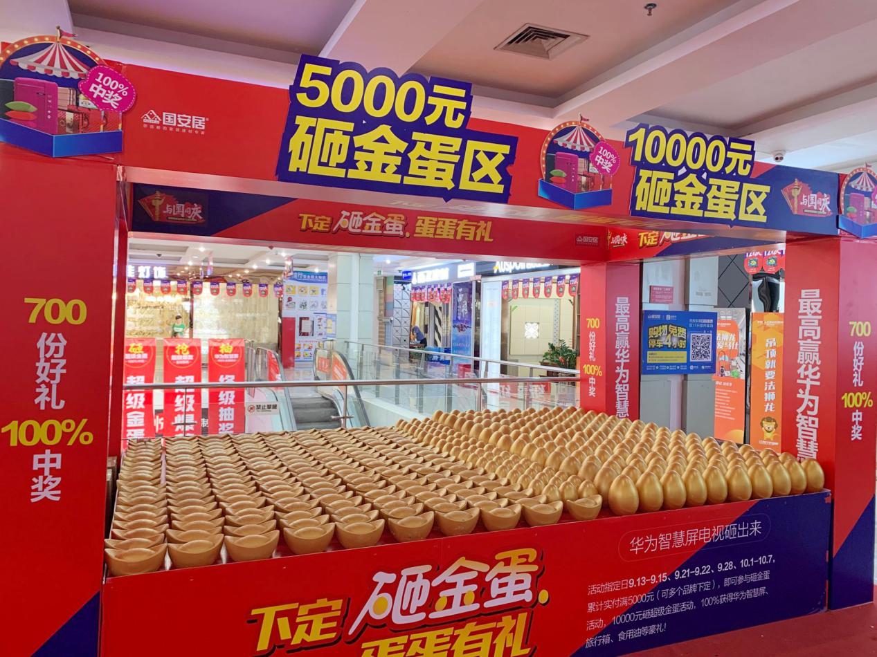 2、蛋蛋有奖——每天送出一台华为智慧屏。9.21-9.22、9.28、10.1-10.7活动指定日,累计实付满5000元(可多个品牌下定),即可参与砸超级金蛋活动,10000元砸超级金猪活动,100%中奖!每天一台华为高端智慧屏等你砸出来!