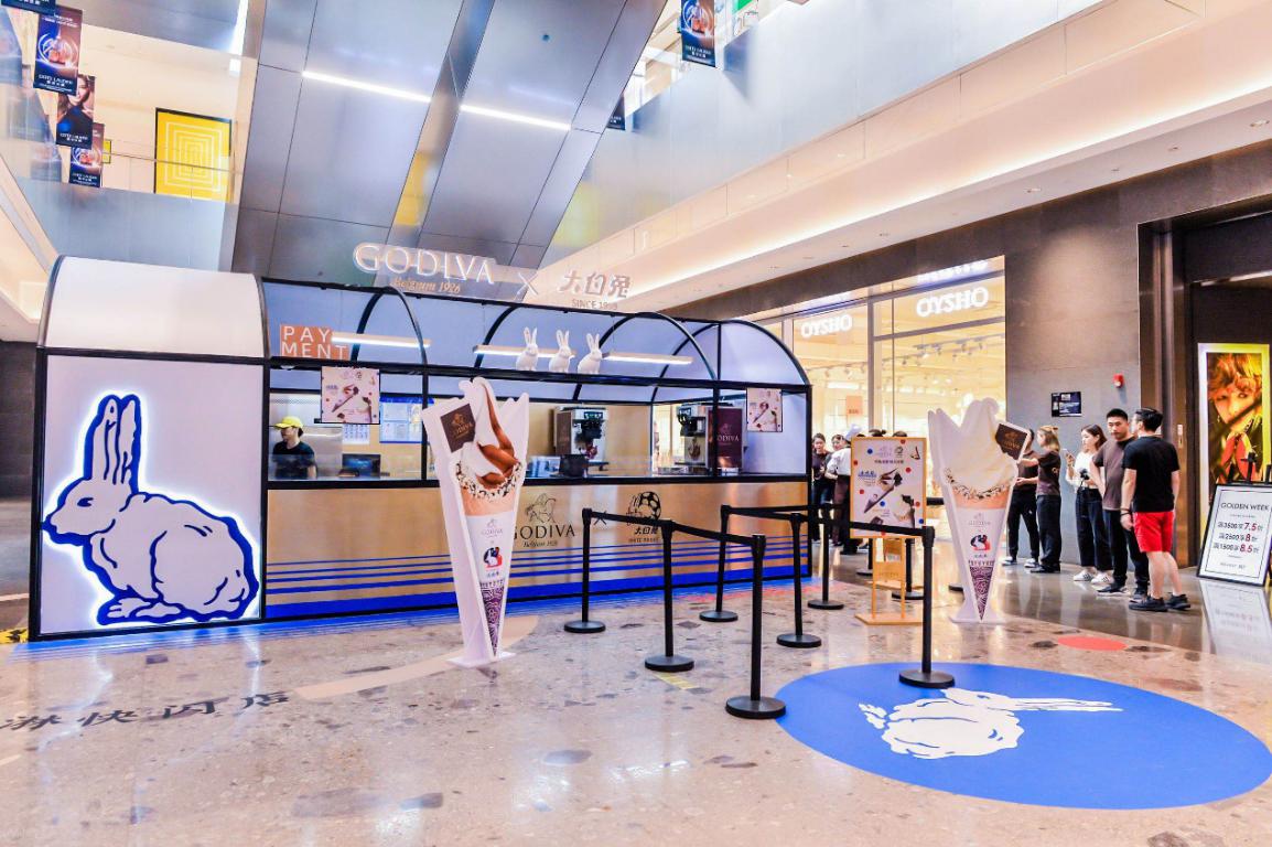 借着国潮品牌的崛起之风,2019年9月28日-10月27日, GODIVA&大白兔冰淇淋快闪店登陆深圳万象天地。国潮断货王,在这里通通都可以买到,转眼间,童年记忆中的大白兔已跨过60个年头,但香甜奶味依旧未曾改变。