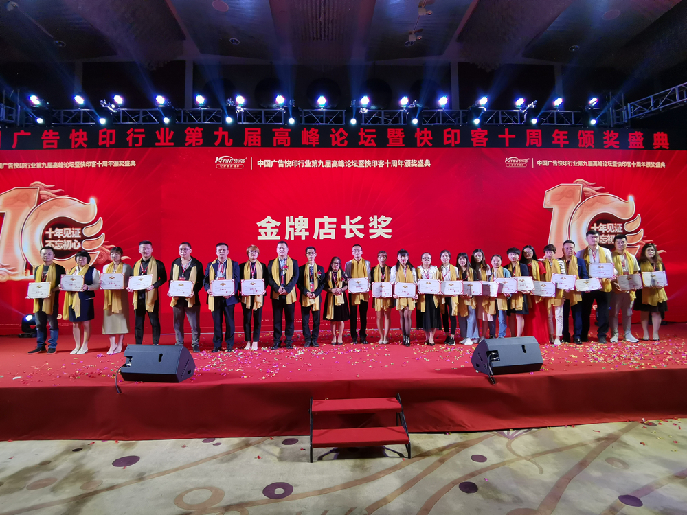 2019年,也是快印客成立的第十年,作为广告快印行业新模式的创造者和领航者,本届高峰会“十年见证,不忘初心”为主题,向行业展示了快印客十年取得的丰硕成果,共同开启下一个黄金十年,并向过去一年里为行业做出突出贡献的公司和个人颁发了荣誉奖项。