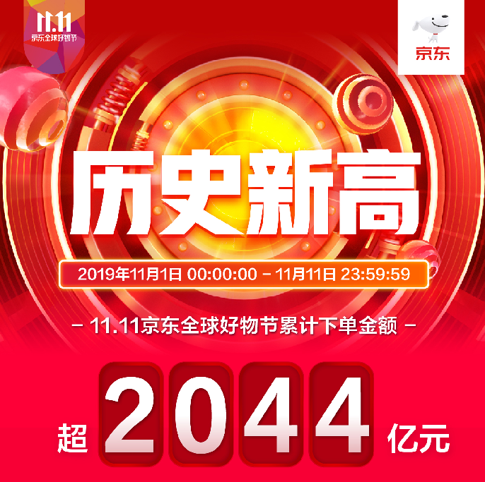 深圳新闻网2019年11月12日讯 从11月1日零时起至11月11日23时59分59秒,“11.11京东全球好物节”累计下单金额超过2044亿元,较2018年11.11实现大幅超越。这也是继今年年中“618十六周年庆”累计下单金额创下2015亿元之后,京东在年末11.11打造的又一实力新主场。