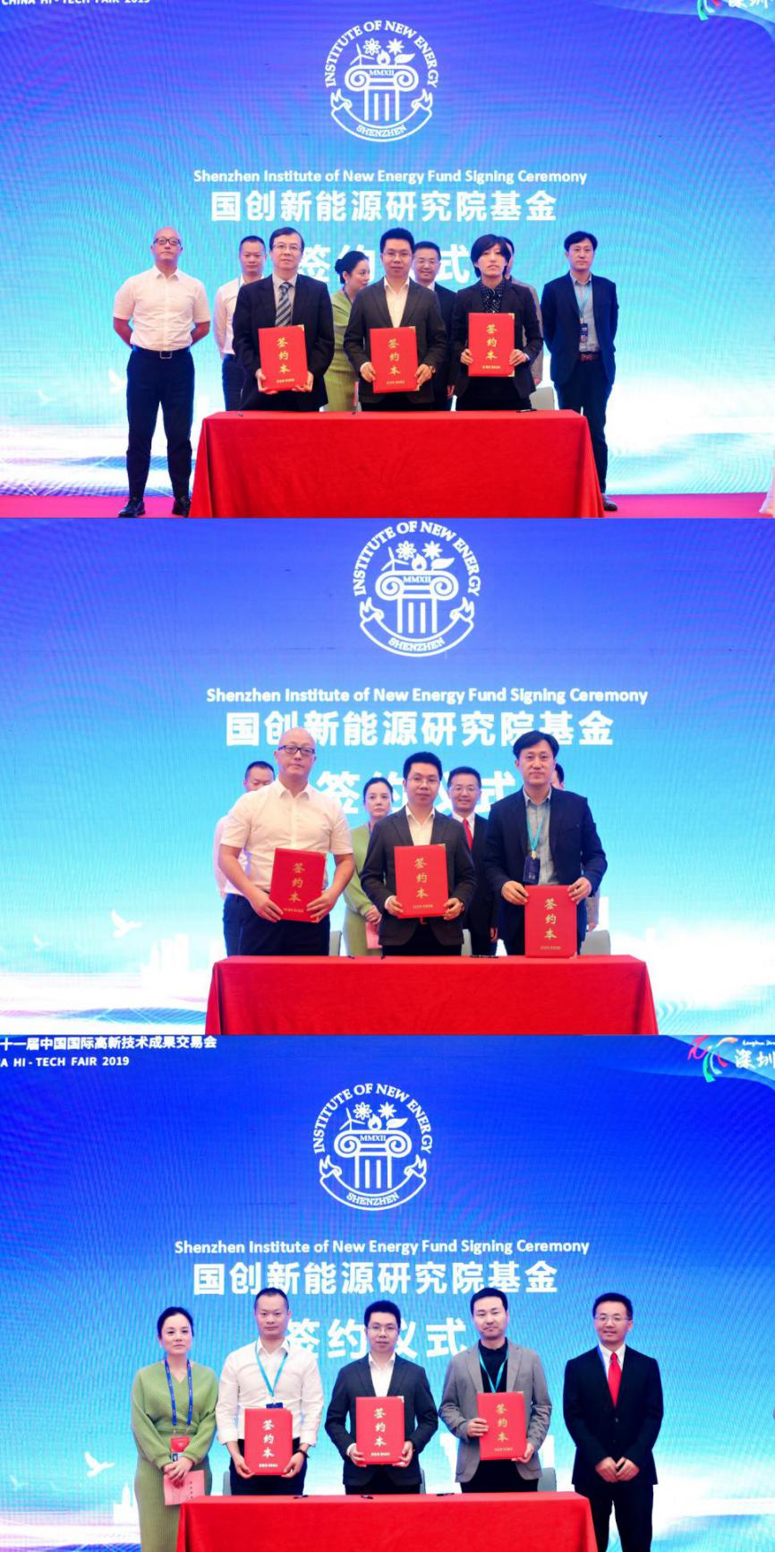 国创新能源研究院从创建以来,已经孵化了8家企业,围绕这些孵化企业,国创新能源研究院与赛马资本、华创深大、汉唐资本、锦泓资本、东方守正(深圳)投资管理有限公司、江苏银行深圳分行,共6家联合成立了“国创新能源研究院产业基金”,并在2019国际前沿科技高峰论坛正式签约,由国创新能源研究院投资部部长林龙清代表签署,国创新能源研究院茆胜院长、尹辉副院长上台见证。