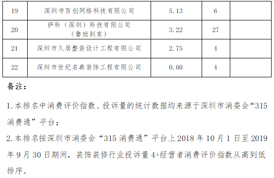 此外,本次公布的深圳市消委会装饰装修行业消费评价指数排行榜中,深圳新家生活科技服务有限公司(9.00)、深圳市百创网络科技有限公司(5.13)和萨科(深圳)科技有限公司(鲁班到家)(3.22)3家经营者未建立投诉处理便捷通道,投诉处理效率低于其他经营者,增加了消费者维权成本。