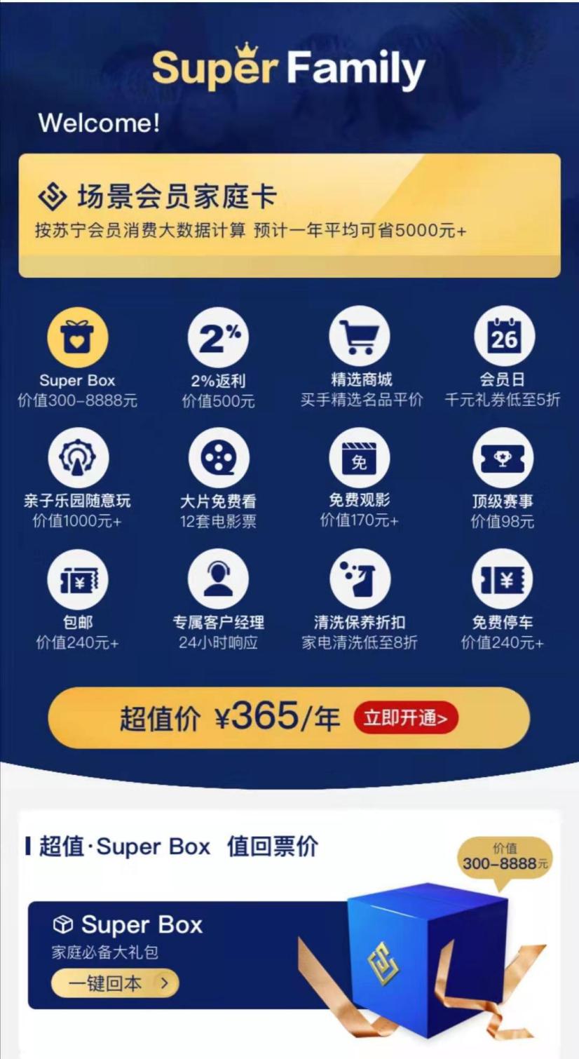 “在设计这款会员产品时,我们希望能触达每一位家庭成员。”苏宁相关负责人解释说:“比如妈妈,她用的更多的可能是购物,那么家庭会员有购物2%的返利;爸爸可能喜欢体育,我们有顶级赛事的观赛劵赠送;对于孩子,我们提供了免费游玩乐园、免费看电影、免费停车等福利,让全家人尽情享受亲子时光。”