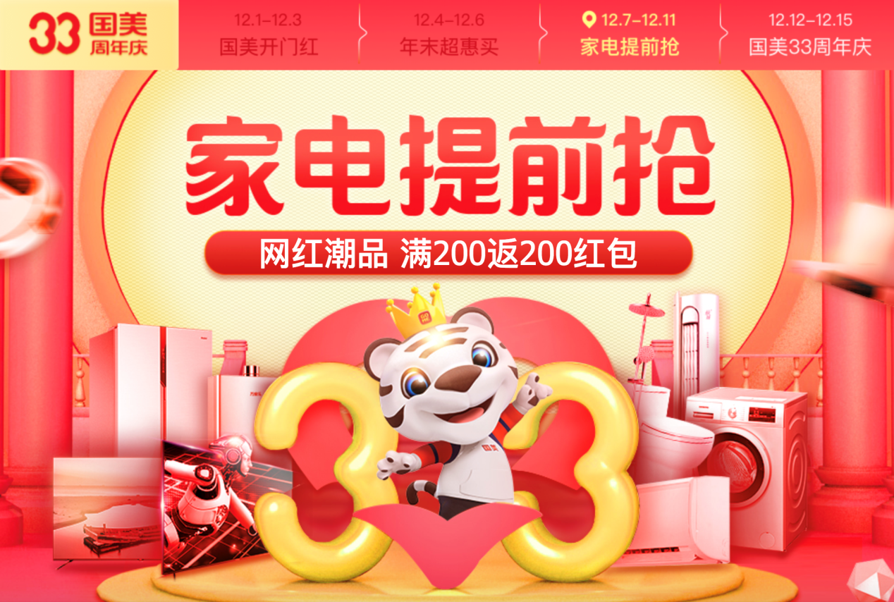 12月12日-14日,国美33周年“超级夜市”,线上商城、线下门店共赴一场“巅峰2小时”的盛宴。家装、换新、添置新物件,所有的需求在国美一次满足。