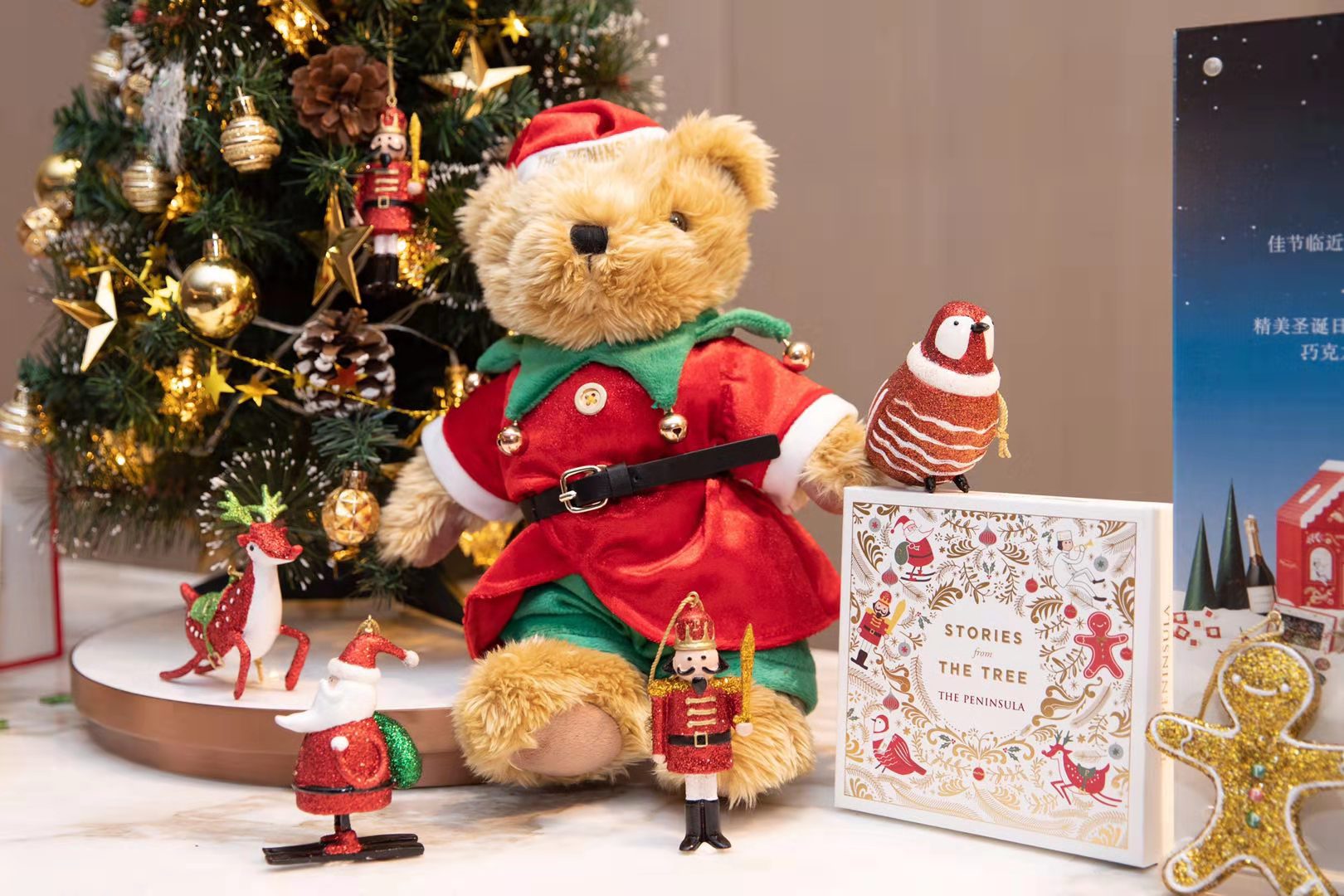 集团遍布全球的十间半岛酒店,将以“圣诞树传说”为主题,六个妙趣横生的角色人物,包括胡桃夹子、姜饼人、半岛门童和圣诞知更鸟等,将会点缀装饰每间半岛酒店大堂的巨型圣诞树以及各个角落。这六款角色的圣诞挂饰可供客人于半岛精品店选购回家,现于半岛精品店线上零售点任意选购16个圣诞挂饰,即可获赠半岛扁桧圣诞树(1.8米盆栽)一棵及专业花艺师现场装饰圣诞树服务一次(仅限广州顾客专享)。