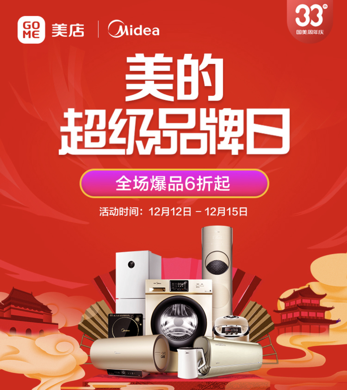 作为多元化家电产品品牌美的,在本次超级品牌日活动中更是给予了10余个品类的数十款产品大幅的优惠力度。12月12日至15日期间,美的爆品,全场6折起,大家电最高直降1000多元,小电器返券更可实现“0元购”,力度空前。