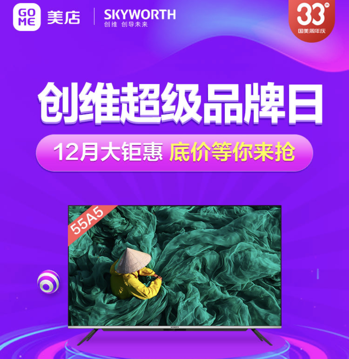 国美33周年庆期间,创维超级品牌日也在国美美店同步开启,相比于其他品牌,创维电视没有那么多活动,仅仅采用了价格直降的方式,简单粗暴,直接购买即可。