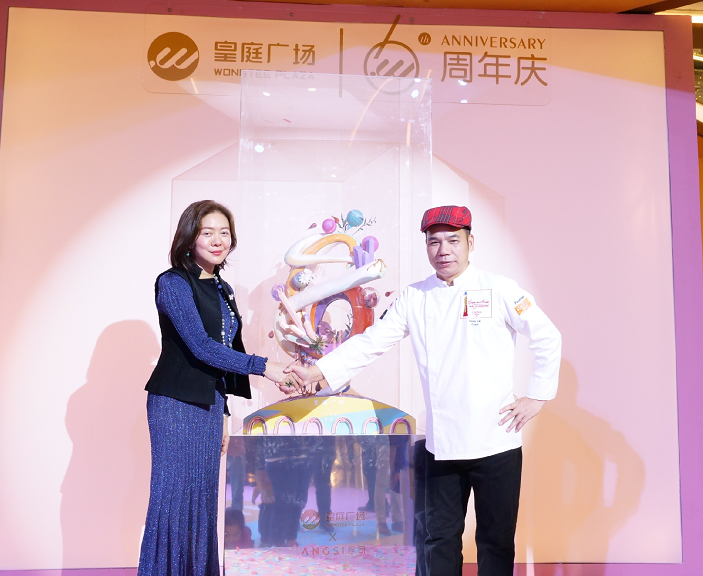 此次六周年的生日蛋糕是由世界西点大师兼ANGSI昂司西点研发总监林绍特别为深圳皇庭广场庆生的匠心之作。蛋糕灵感来自浩瀚银河系,香甜奶油通过水晶柱环绕着彩色数字6,寓意着皇庭广场6年来致力于为顾客提供贴心服务的宗旨。紧贴在数字6之上的彩色水晶球,包裹着来自时尚、数码等不同潮流领域的产品,水晶球之间相互辉映,闪耀着各自时尚的魅力,传递对生活的美好追求。