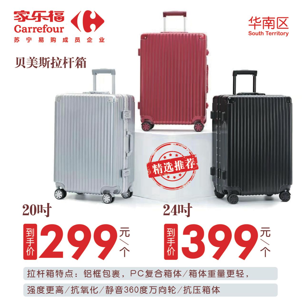 继2019年春节引发抢购热潮后,传说中抗重压、抗撞击、抗摔,且容量大、人手必备的贝美斯拉杆箱再次掀起抢购风潮!强大功能全面升级,铝框包裹,PC复合箱体,重量更轻,静音360度万向轮。20寸拉杆箱到手价299元/个,24寸规格只需399元。简直是旅游、返乡、出差的必备神器。