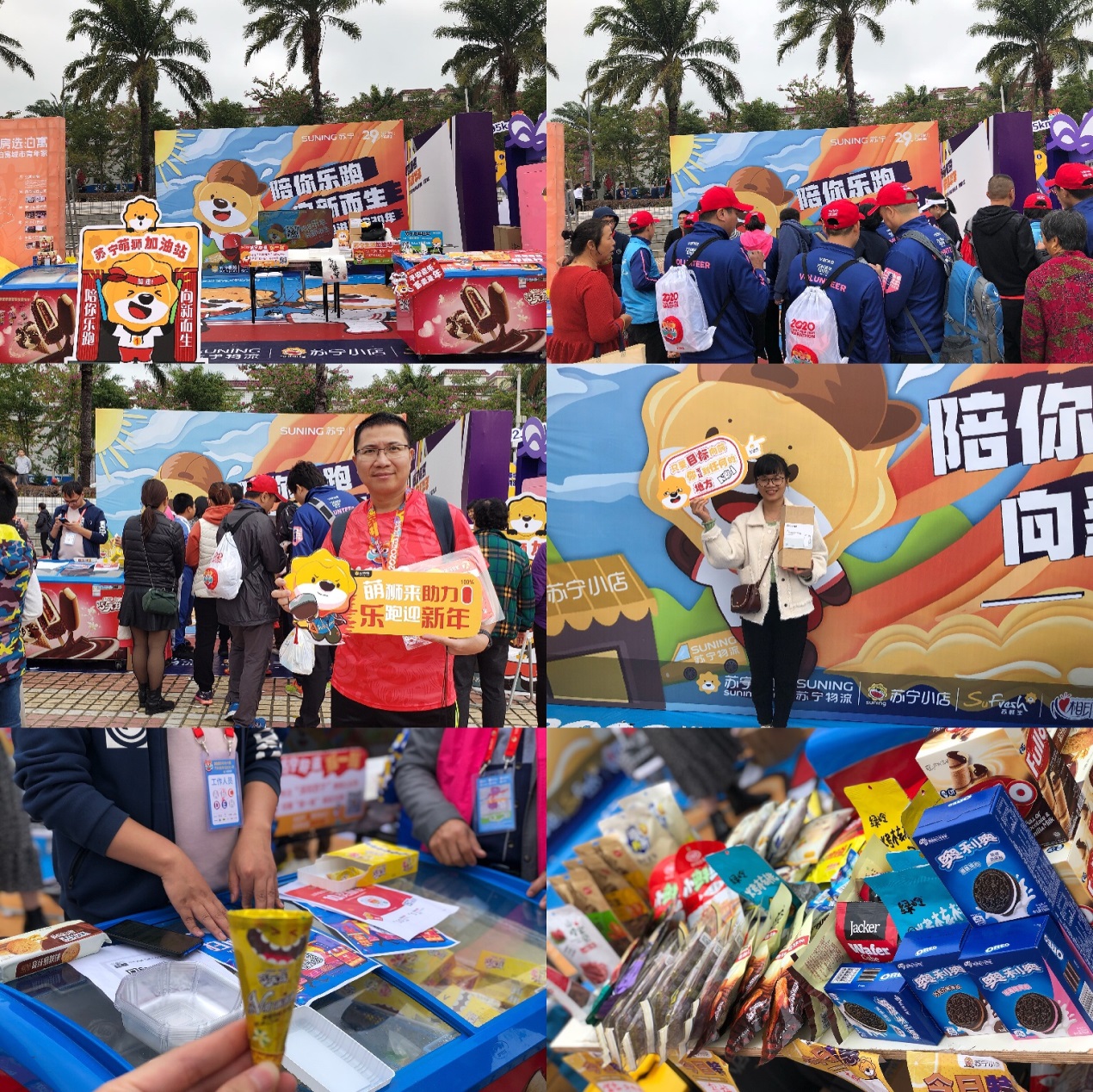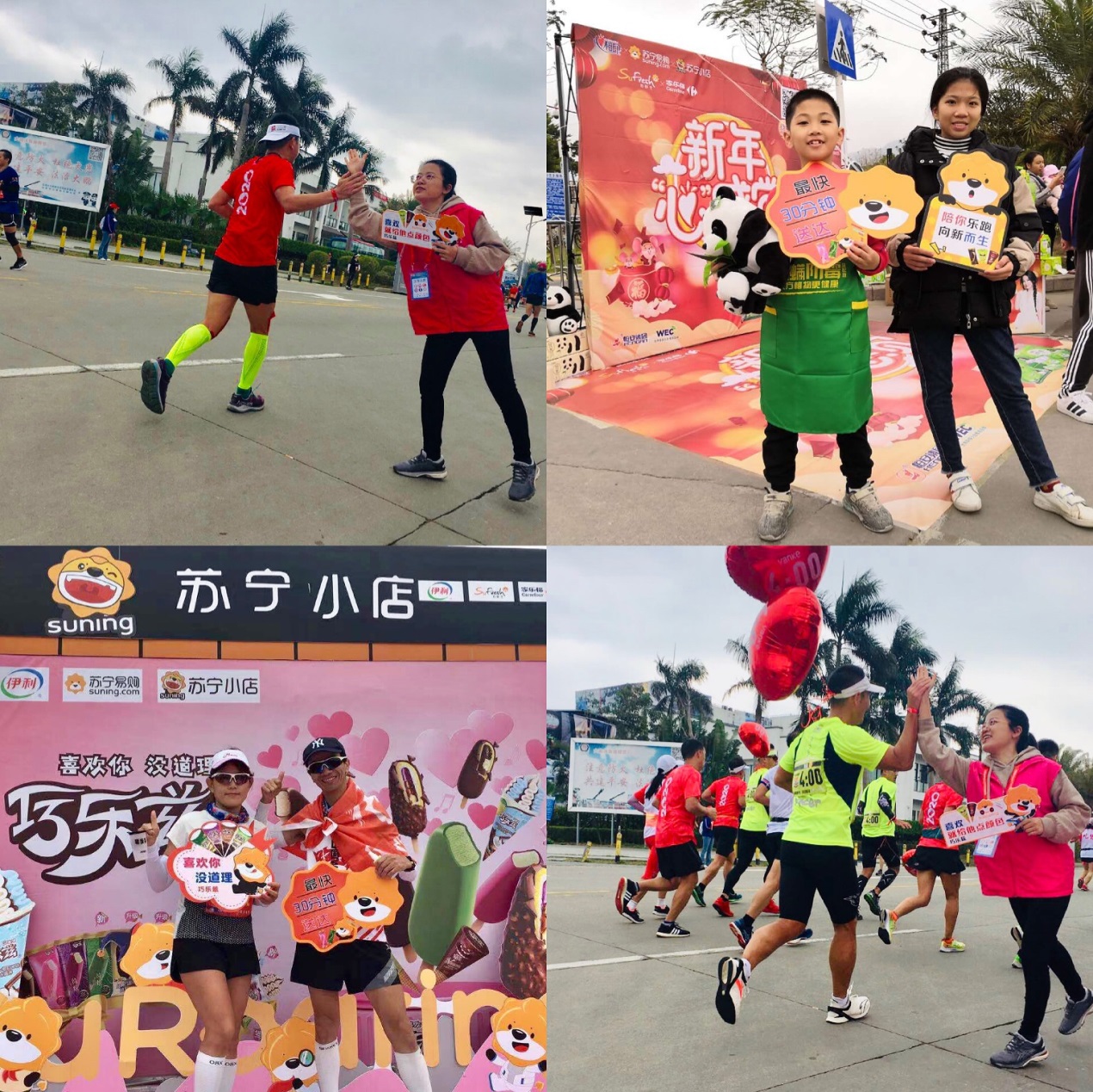 赛事由上午7:30持续到下午13:30。不到3小时,终点处迎来了第一名冲刺!参赛者李栋兴以2:25:13的优异成绩打破赛会纪录,获得了2020大鹏万科新年马拉松的冠军,现场赛道周边满是为他欢呼的声音,相信这是他送给自己的最好的新年礼物。上午10点之后,其他参赛者也陆续抵达终点——大鹏文化广场,广场内设置了参赛者冰水沐足区,更衣室,包裹领取处,还有各种赞助商的趣味互动区,已经完成比赛的跑者可以在此处休息放松。其中,苏宁在终点处设置了免费美食领取,摇一摇抽大奖等趣味互动,吸引了众多观众前来打卡。(通讯员/黄敏君)