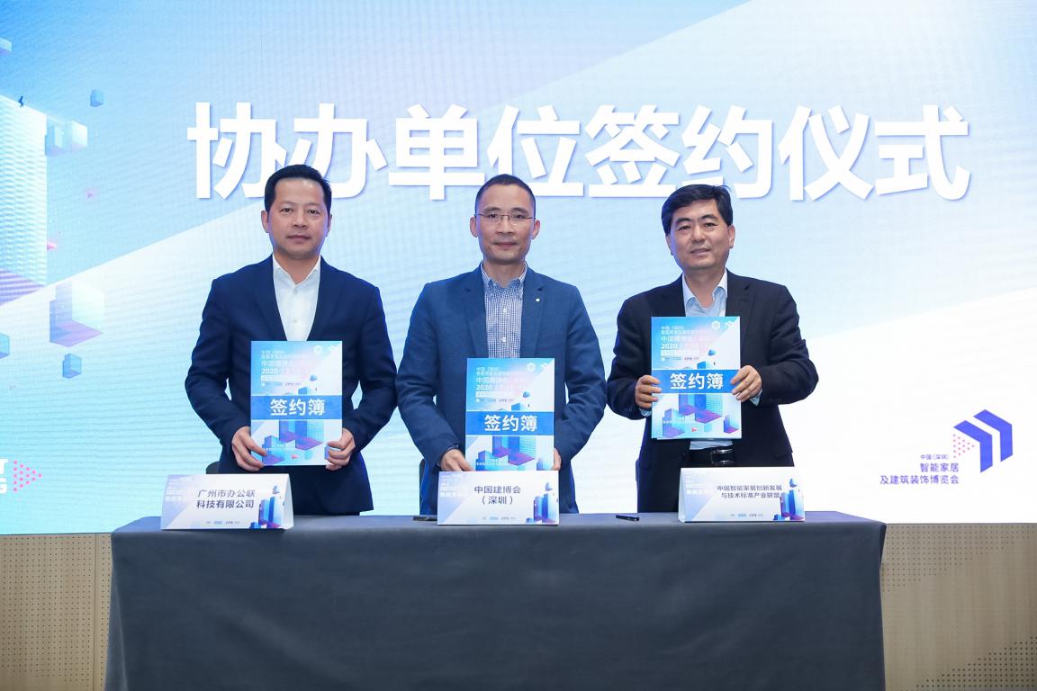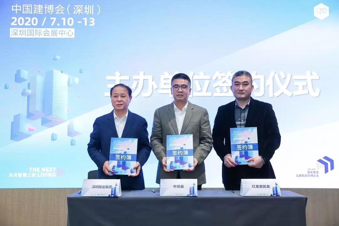致辞结束后,中国建博会(深圳)三家主办单位中贸展、红星美凯龙、深圳报业集团现场进行签约仪式。