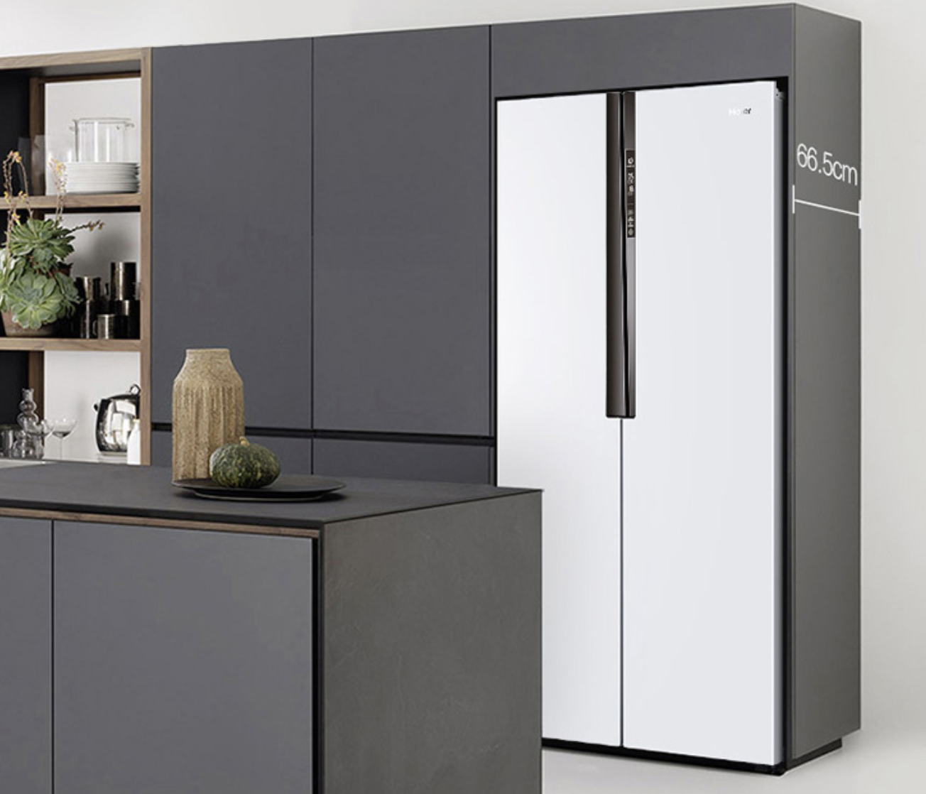 过年囤货一款大容量冰箱少不了。海尔BCD-452WDPF对开门冰箱采用66.5cm轻薄设计,打破传统对开门冰箱体积大、占地面积多的尴尬,轻薄的机身可以轻松的和厨房融为一体,有效的提高了空间利用率。同时,只需90°开门,就能完全打开冷藏、冷冻抽屉,冰箱两侧无需预留更多开门位置,节省更多空间。隐藏式的门把手欧式的设计灵感,看上去简约时尚,和冰箱浑然一体,易清洁、防磕碰。