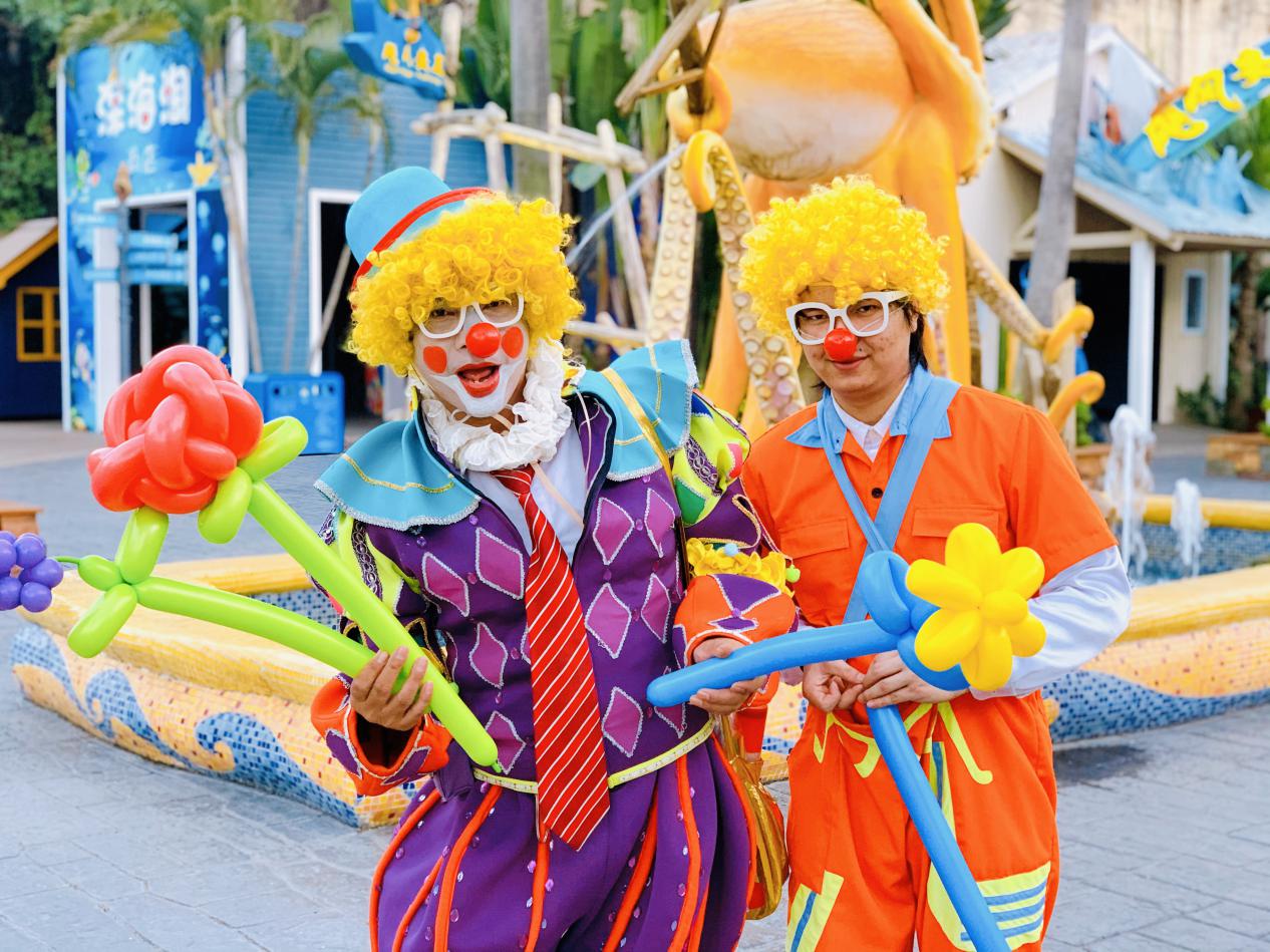 精彩纷呈、笑料不断。来自荷兰的滑稽大师们变身“巨人”与“小公主”,巨型身躯与游客亲密互动洋相百出,手舞足蹈、搞笑不停;来自乌克兰的 Tim&Dali绘画技艺超群,一支笔、一张纸在他们的手上,几分钟的时间就为小朋友绘制出搞笑的漫画形象,带来不一样的游玩体验;表情帝带来滑稽哑剧,表情夸张爆笑不停,丰富的肢体语言妙趣横生、搞怪不断,为大家传递最为纯粹的精彩与快乐;《欢乐达人》、《好运连连看》、《滑稽气球秀》、《小丑爆笑秀》......滑稽大师轮番上场大秀绝活,麻辣爆笑的表演为游客带来无限惊奇与欢乐。更有百名小丑大巡游,带来不间断的精彩街头滑稽秀,让游客尽情尽兴沉醉在在这片欢乐热闹的海洋中。