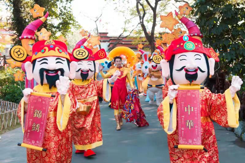 景区将特别奉献全天70场余场特色演出,给游客带来顶级视听盛宴。狮王迎宾鼓、非遗小木偶、非遗皮影戏、快乐小岩侃等节目从早演到晚,密集排期,欢笑不断。更有独具特色的少数民族村寨过大年,27个民族,56种风情,少数民族兄弟姐妹身着节日盛装,各族祝福语此起彼伏,载歌载舞,欢庆新年。