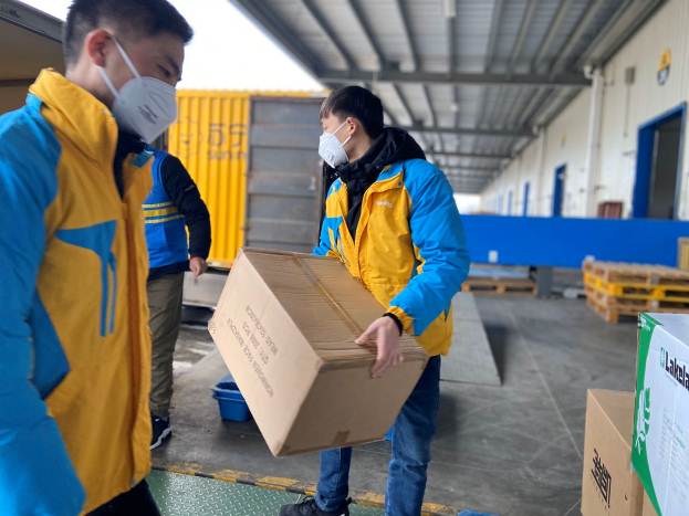 苏宁华中物流园,苏宁物流将防疫物资装车送到医务工作者、前线记者、快递员手中
