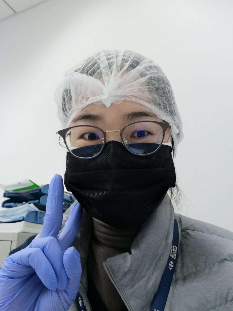 苏宁家乐福员工高艺在朋友圈晒图,口罩、手套、帽子一应俱全