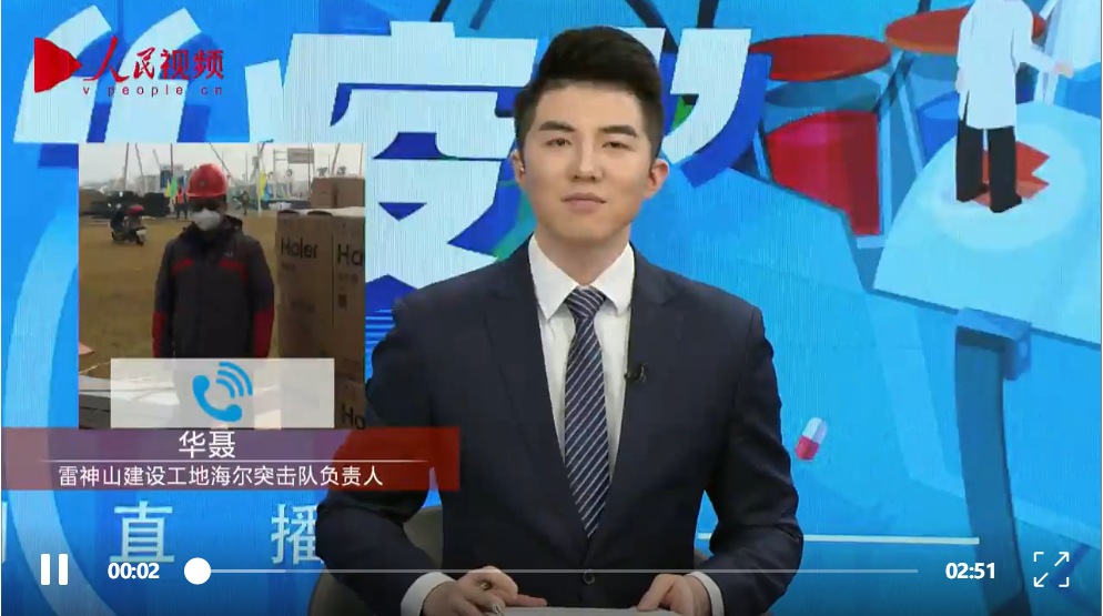 深圳新闻网2020年2月12日讯 近日,人民网、人民视频特别直播节目《人民战“疫”》在雷神山现场连线了来自海尔的突击队,向大家展现了一群昼夜驻扎建设一线的与时间赛跑者。
