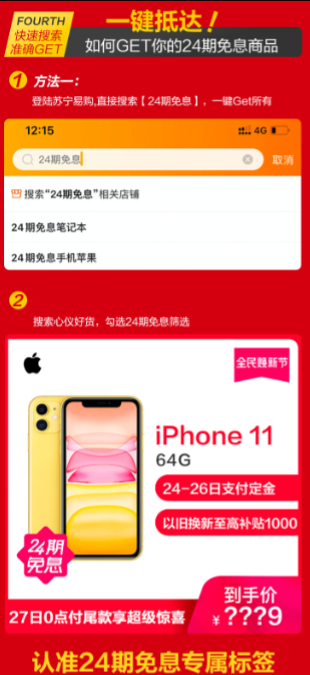 0首付0利息0手续费!24分期免息,只要正常还款,不会影响征信。从2月27日到3月16日,上苏宁购家电、家装、手机等品类,享24期分期免息。不用再等双十一,羊毛党、体验党、等等党、爱卡党收好攻略,提前加购。